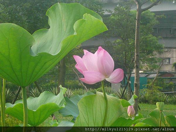 昨下班行經北平東路,遠遠撇見一片粉紅 , 心想...不會是荷花池吧! ((在這都是叢林中....))
