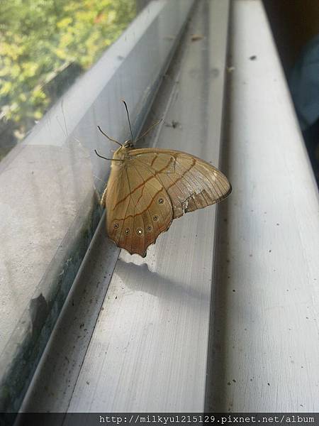 在等待蹦蹦車的空檔,發現一隻受傷的蝶兒停在窗沿上...