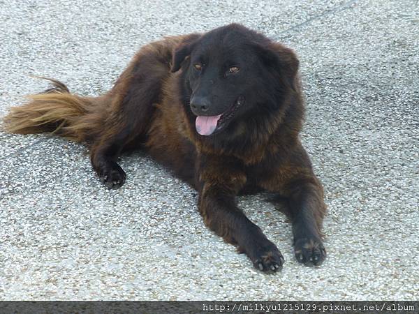 那狗兒熱到躲在那鐘塔下,桃子靠近時.牠都懶得我理我呢...